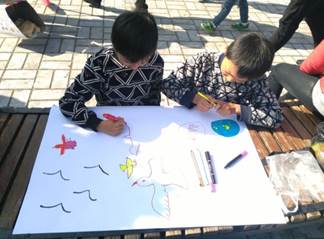 们送上一份鸥粮。在大量的市民朋友以及一些外国游客的积极参与下,半小时之后画纸上呈现出他们一幅幅优美的作品。随后进行活动的轮换,为关爱环卫工人,给红嘴鸥一个干净的家,我院青协人员开始帮助环卫工人做清洁工作,在此过程中受到广大游客朋友们的赞扬和肯定,保护环境这个活动得到了大众的认可。最后,一个小组将横幅拉开,进行一个关爱红嘴鸥的公益签名活动,在此期间,小组成员向游客宣传保护红嘴鸥的重要性及相关做法。活动期间,每名志愿者都尽职尽责,四个小组多次进行任务交换。下午15:00左右活动结束,各小组组织返校。